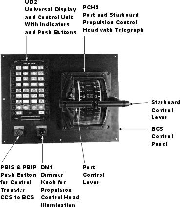 The PMC propulsion control system has three propulsion control stations. The Local Control Station provides separate speed and clutch control. The Central Control Station is the engineer's main control station. The Bridge Control Station is the remote control station on the bridge.