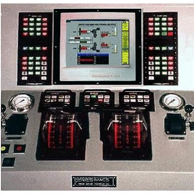 To complete the retro-fit, PMC designed and manufactured a new propulsion control console for the Engineers Operating Station, and flush mounting plates for the Bridge stations. All the PMC supplied controls and instrumentation as well as existing ships equipment were incorporated into the new propulsion control console and flush mounting plates.